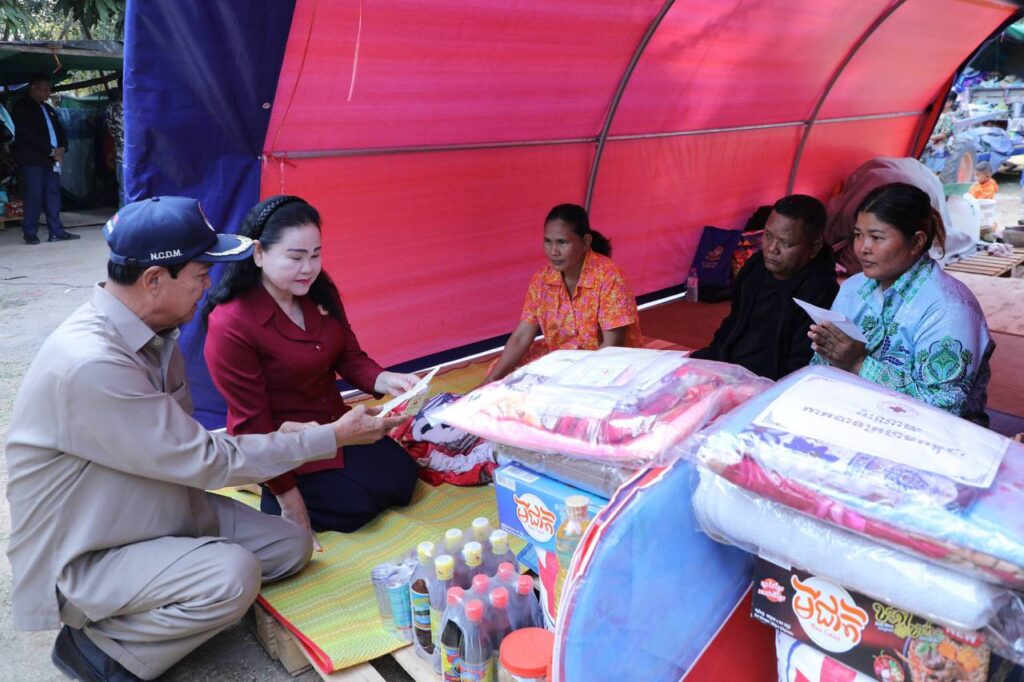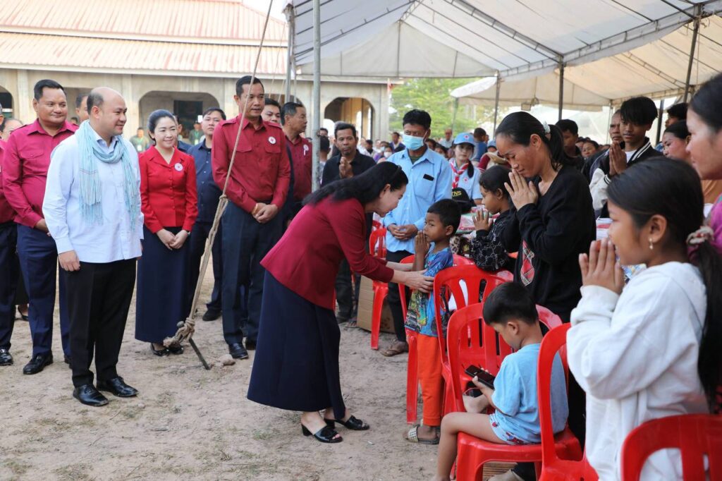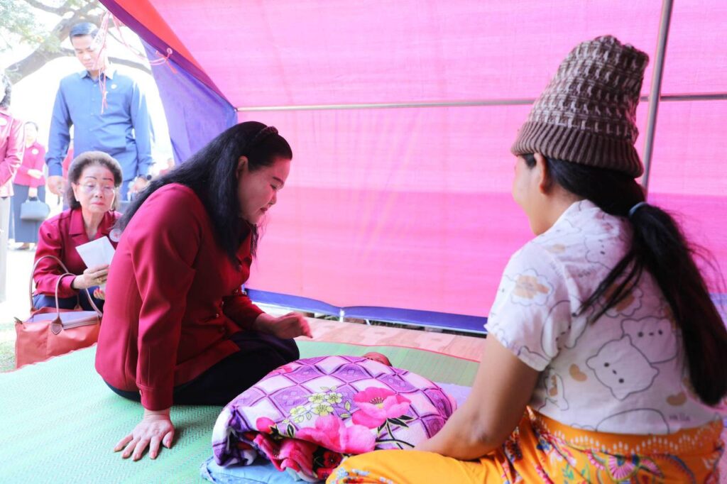 នាកិច្ចសំណេះសំណាលសួរសុខទុក្ខជាមួយប្រជាជនភៀសសឹកទាំងអស់ អ្នកម្ដាយមនុស្សធម៌ សម្តេចកិត្តិព្រឹទ្ធបណ្ឌិត ប៊ុន រ៉ានី ហ៊ុនសែន បានពាំនាំនូវព្រះរាជបន្ទូលរបស់ ព្រះករុណា ព្រះមហាក្សត្រ ជាអម្ចាស់ជីវិតលើត្បូង និងព្រះសវណីយ៍ សម្តេចព្រះមហាក្សត្រី ព្រះវររាជមាតាជាតិខ្មែរ ព្រះប្រធានកិត្តិយស កាកបាទក្រហមកម្ពុជា ជាទីគោរពសក្ការៈដ៏ខ្ពង់ខ្ពស់បំផុត ដែលព្រះអង្គទាំងទ្វេបានផ្តាំផ្ញើសួរសុខទុក្ខ និងក្តីនឹករលឹក ជាពិសេសការគិតគូរពីសុខទុក្ខប្រជានុរាស្ត្ររបស់ព្រះអង្គនៅគ្រប់ទីកន្លែង និងគ្រប់ពេលវេលា ព្រមទាំងសូមជូនពរបងប្អូនប្រជាពលរដ្ឋសូមមានសុខភាពល្អ ដើម្បីបន្តប្រកបរបរចិញ្ចឹមជីវិតតទៅមុខទៀត។