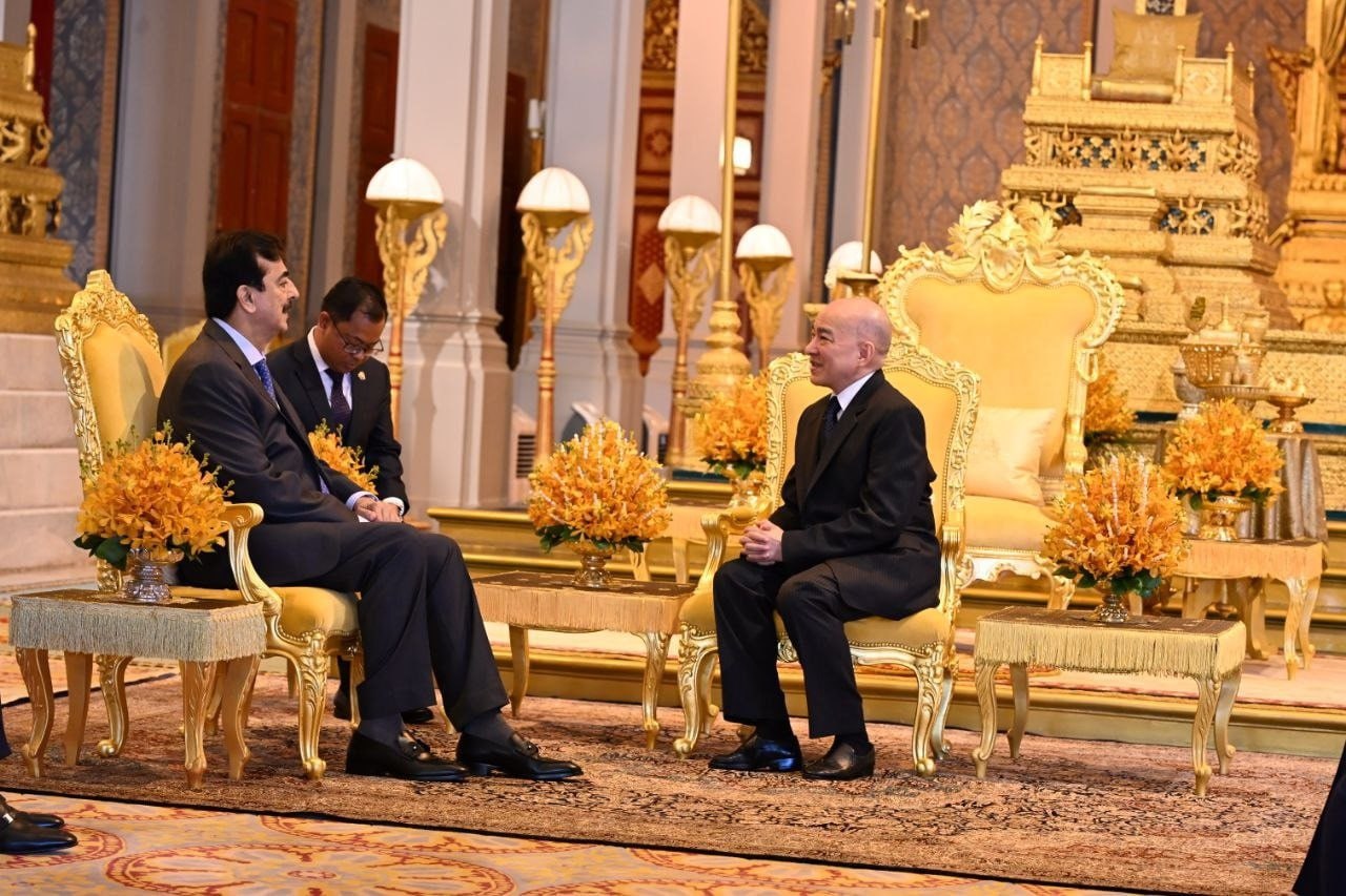 ព្រះមហាក្សត្រនៃកម្ពុជា ព្រះរាជានុញ្ញាតឲ្យប្រធានព្រឹទ្ធសភាប៉ាគីស្ថាន ចូលក្រាបបង្គំគាល់ (ភ្នំពេញ)៖ នៅព្រឹកថ្ងៃទី៣ ខែកុម្ភៈ ឆ្នាំ២០២៦នេះ លោក ស៊ីយ៉េដ យូសាហ្វ រ៉ាសា ហ្គីឡានី (Syed Yusuf Raza Gillani) ប្រធានព្រឹទ្ធសភា នៃសាធារណរដ្ឋអ៊ីស្លាមប៉ាគីស្ថាន បានចូលក្រាបបង្គំគាល់ ព្រះករុណា ព្រះបាទ សម្តេចព្រះបរមនាថ នរោត្តម សីហមុនី ព្រះមហាក្សត្រនៃព្រះរាជាណាចក្រកម្ពុជា ជាទីគោរពសក្ការៈដ៏ខ្ពង់ខ្ពស់បំផុត នៅព្រះបរមរាជវាំង ក្នុងឱកាសដឹកនាំគណៈប្រតិភូព្រឹទ្ធសភាប៉ាគីស្ថាន អញ្ជើញមកបំពេញទស្សនកិច្ចផ្លូវការ នៅព្រះរាជាណាចក្រកម្ពុជា ពីថ្ងៃទី២-៥ ខែកុម្ភៈ ឆ្នាំ២០២៦៕