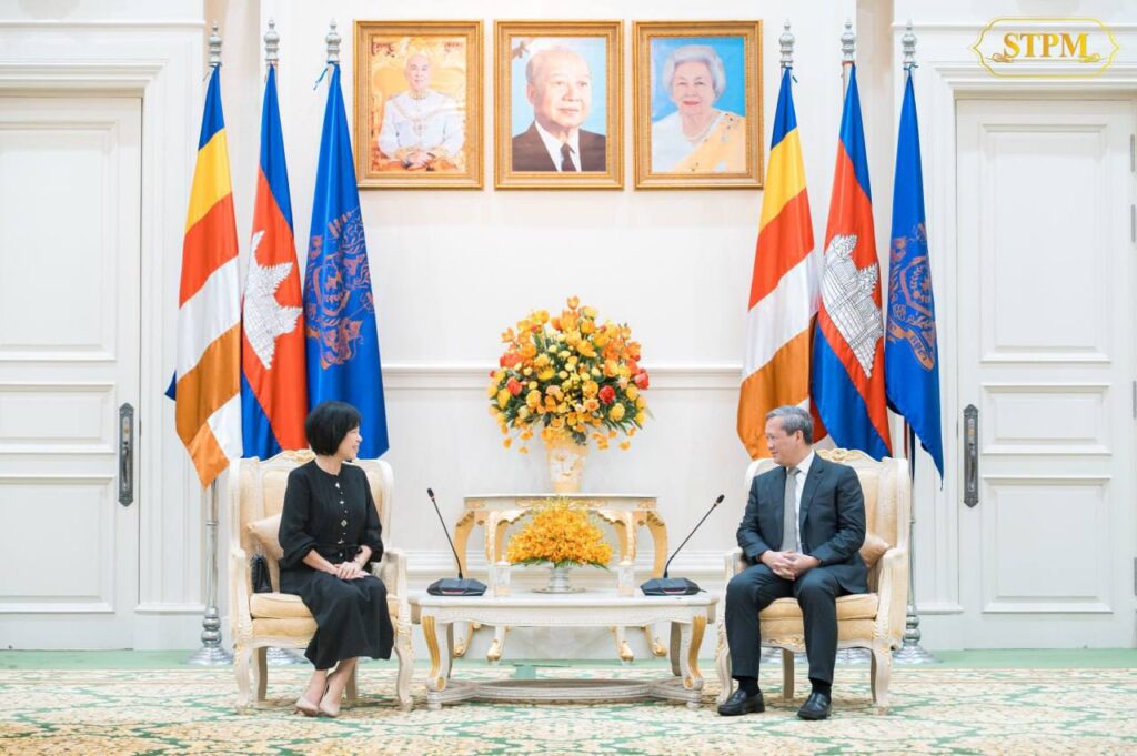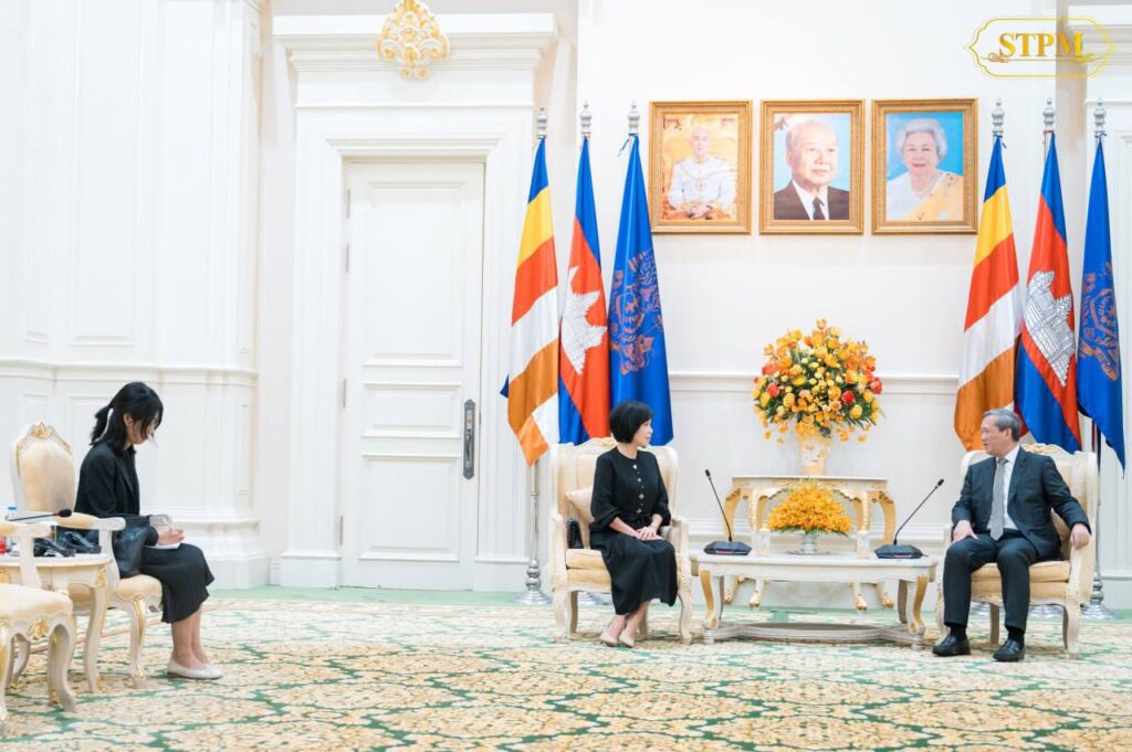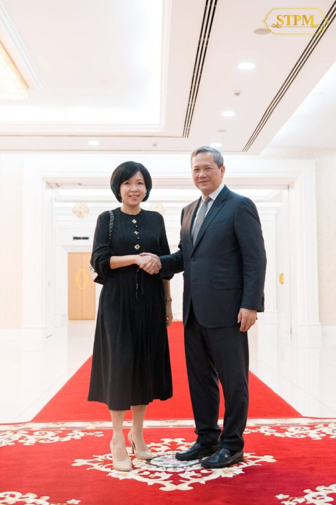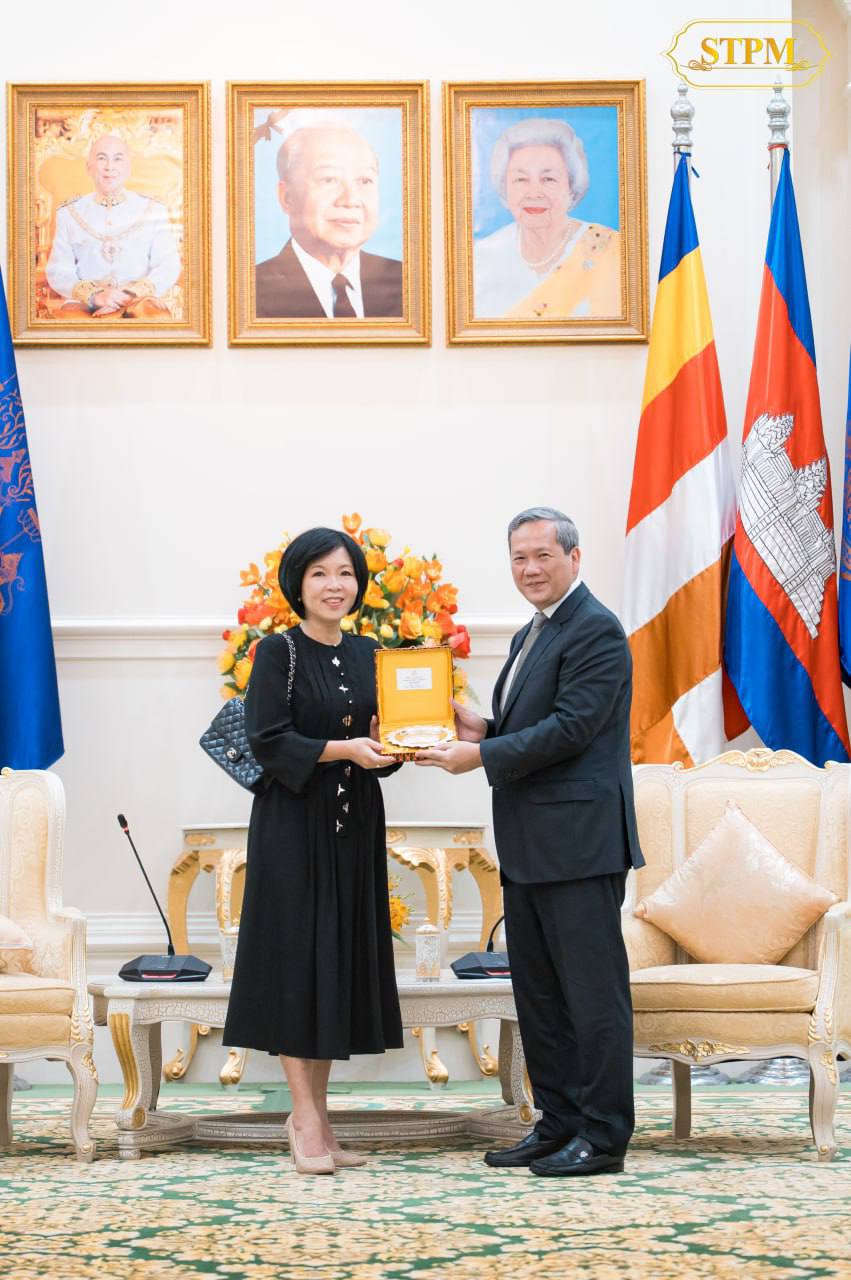 ជួបជាមួយ លោកជំទាវ TEO Lay Cheng ឯកអគ្គរដ្ឋទូតសិង្ហបុរី ប្រចាំព្រះរាជាណាចក្រកម្ពុជា ក្នុងជំនួបសម្តែងការគួរសម និងជម្រាបលា នៅវិមានសន្តិភាព។