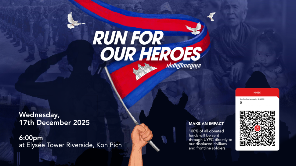 រត់ដើម្បីវីរជនជួរមុខ សូមអញ្ជើញអ្នករត់ និងសាធារណជនមកជួបជុំគ្នានៅថ្ងៃពុធ ទី១៧ ខែធ្នូ ឆ្នាំ២០២៥ វេលាម៉ោង ៦:៣០ ល្ងាច នៅទីក្រុង កោះពេជ្រ សម្រាប់ការរត់ជុំគ្នាចម្ងាយ ៣ គីឡូម៉ែត្រ ដើម្បីសាមគ្គីភាពជាមួយវីរជនជួរមុខ និងប្រជាជនស៊ីវិលដែលបាត់បង់ទីជម្រករបស់កម្ពុជានៅតាមព្រំដែន។